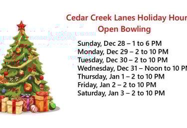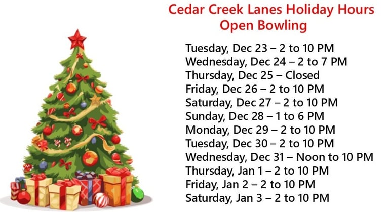 At Cedar Creek Lanes, enjoy family-friendly bowling, delicious food, a full bar, and arcade fun. Join our leagues and celebrate birthdays with us!